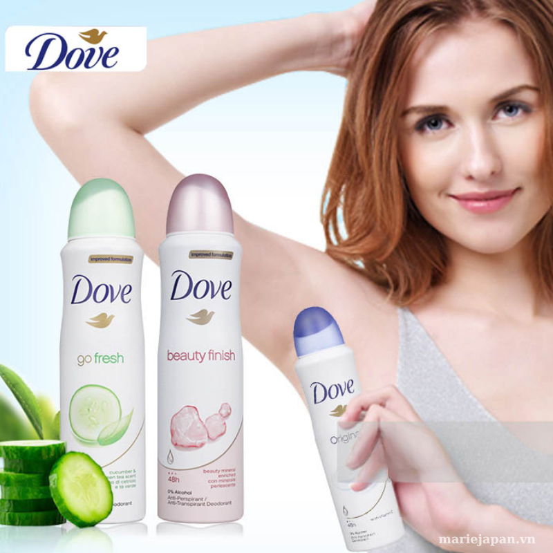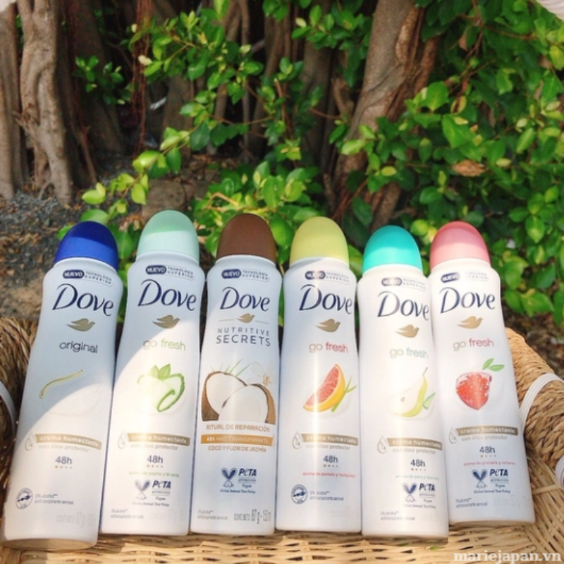 Xịt khử mùi Dove hiện đã có tại Marie với 6 phân loại như sau: